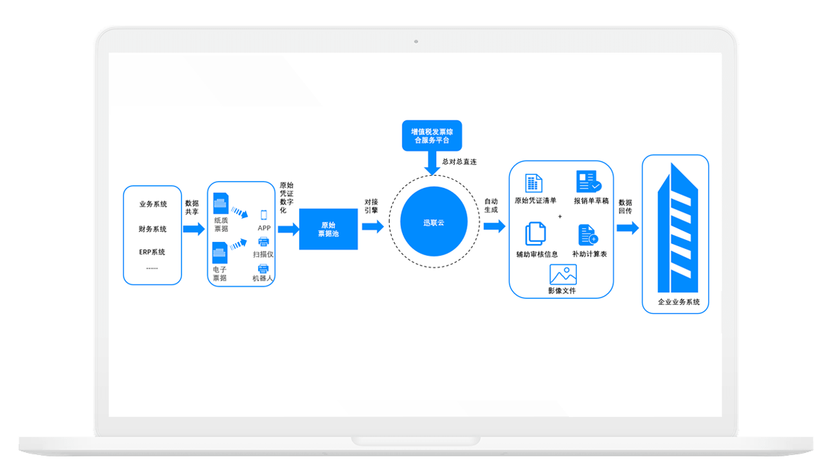 提供从空白发票申领到领购分发,由开具到交付、作废、红冲,以至于抄报税的销项流程闭环,以及从发票采集到合规性查验、自动比对、抵扣认证、统计报表生成的进项流程闭环。