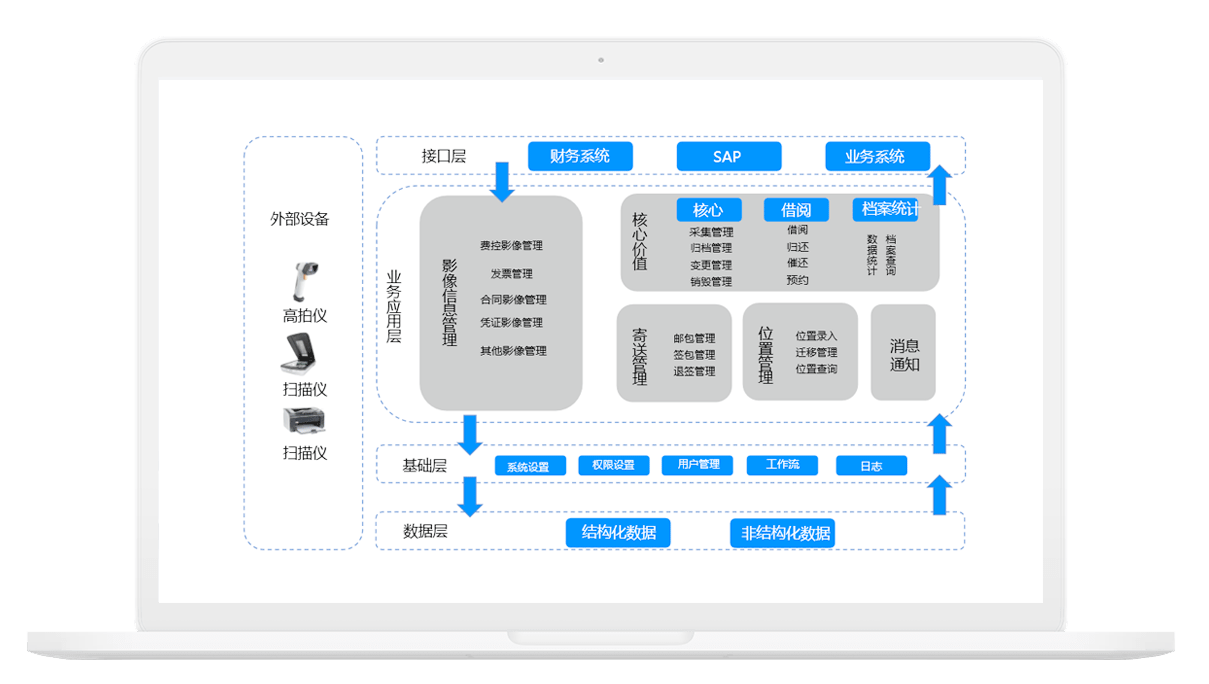 电子影像档案管理通过OCR识别技术和税企直连服务,吉智数联为企业提供所有票据的影像识别和管理,并形成结构化和非结构化数据库,以此支撑会计档案集中管理、电子档案数据库建设,以及提供系统基础及数据基础。
